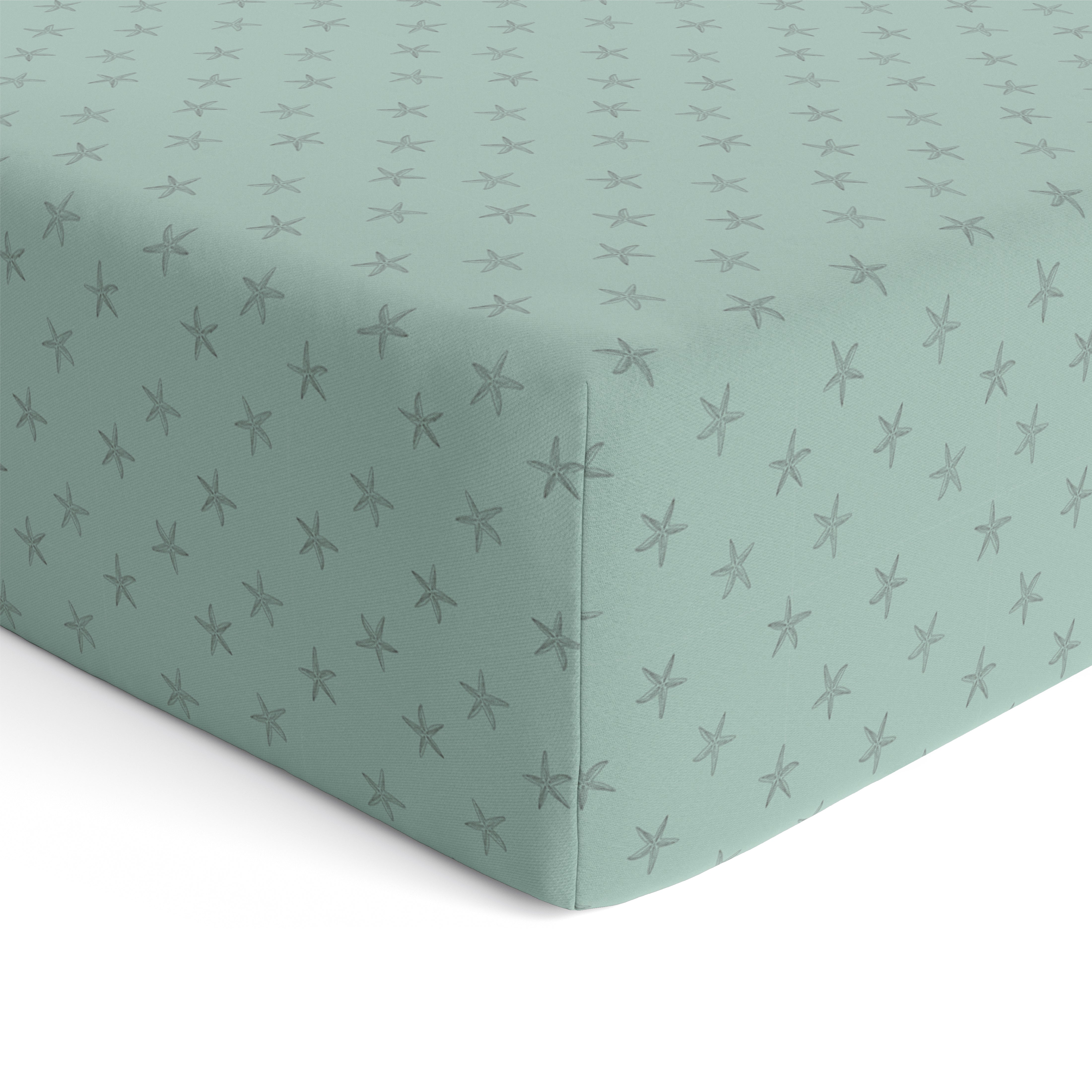 Baby Cot Fitted Sheets / 140 x 80 / Mint Starfish
