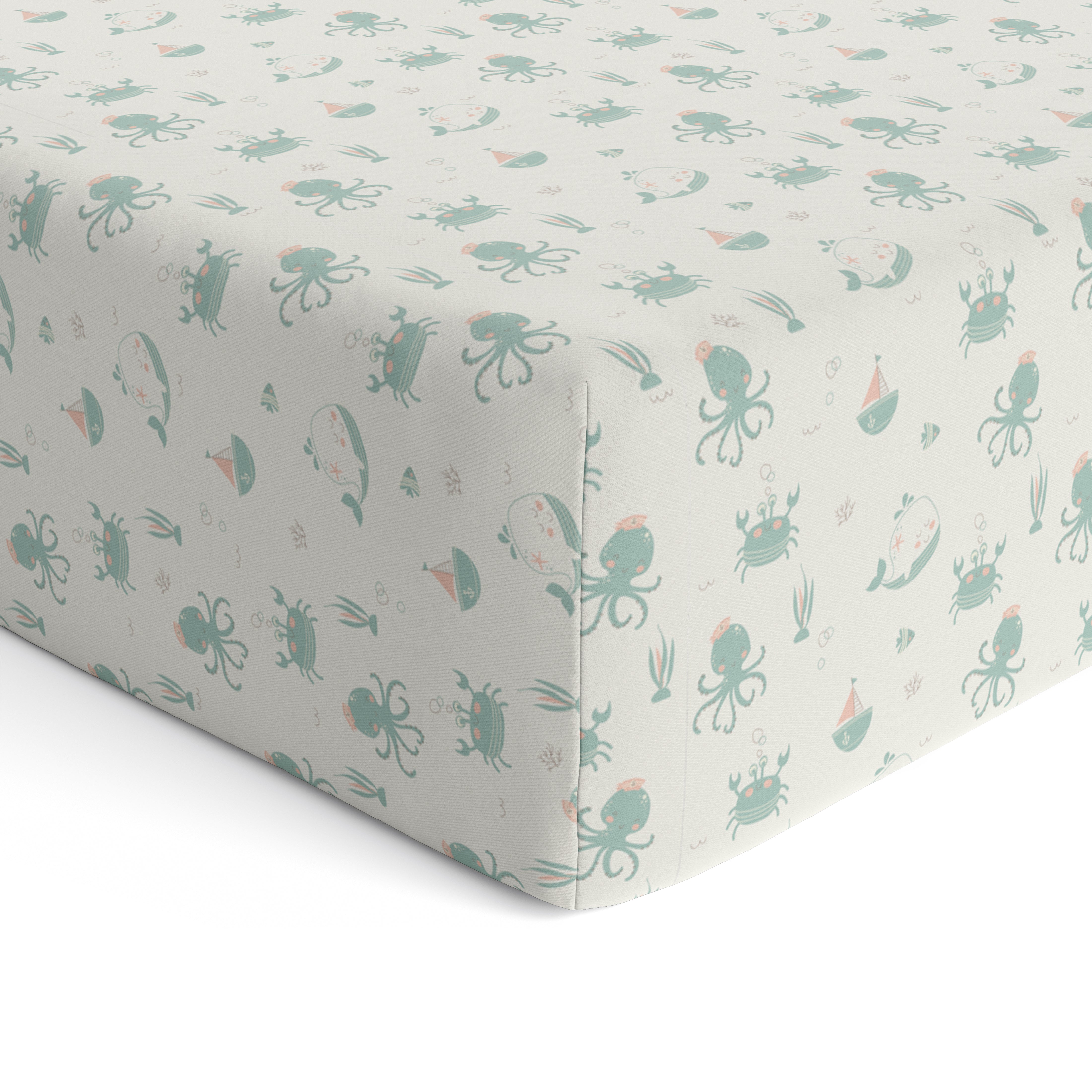 Baby Cot Fitted Sheets / 140 x 80 / Mint Undersea