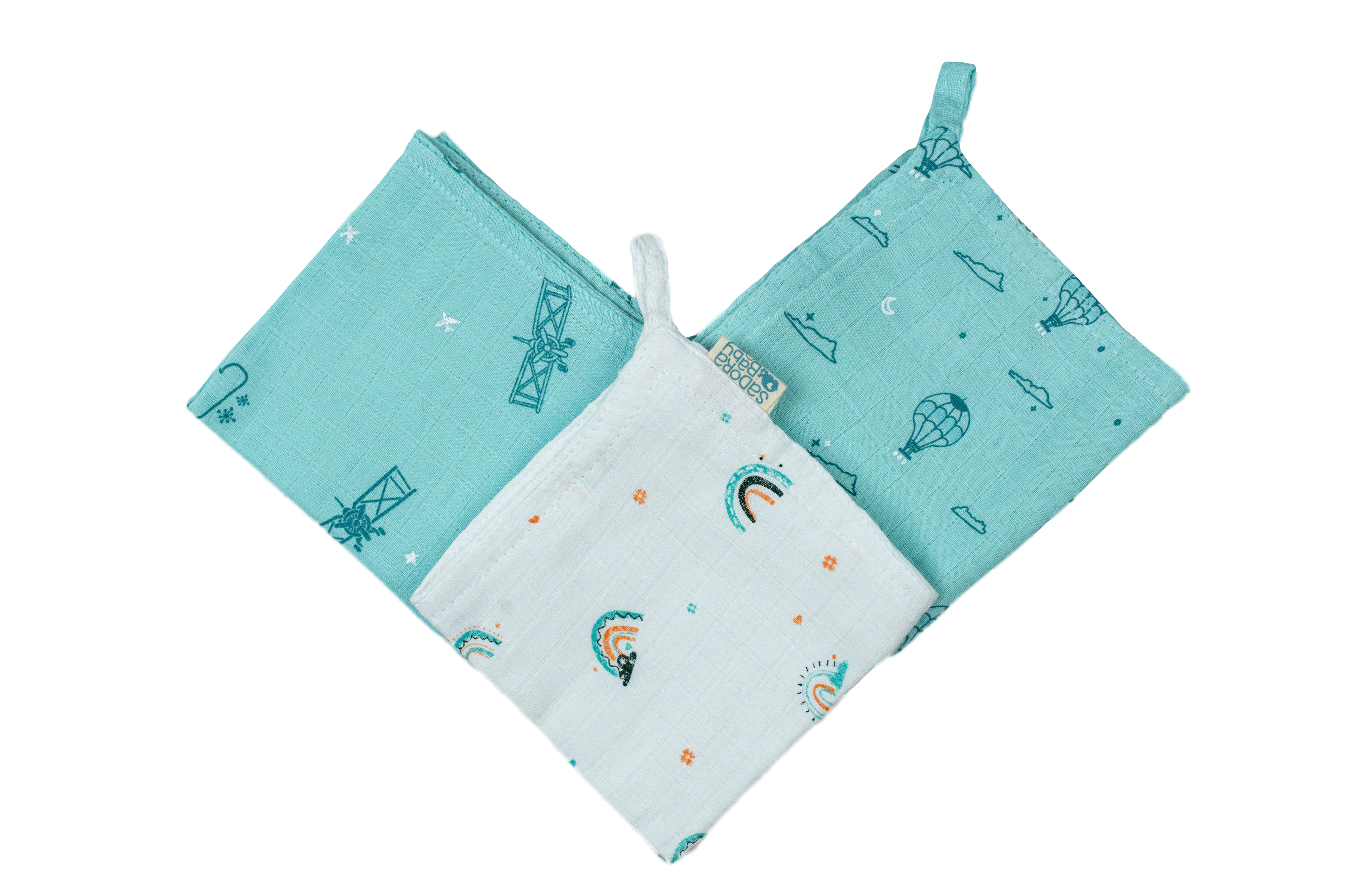Our wash cloths are a great buy as they serve multi-purposes. They are handy to clean Baby's face and body, wipe a runny nose or use them as a burp cloth. These extremely versatile wash cloths are made from Cotton Muslin that is safe on Baby’s skin and gets softer with every wash. They are lightweight, easy to carry and fit into a diaper bag or a jacket pocket with ease.